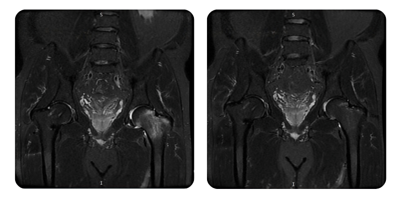 Verlauf: Nach Abschluss der 20 Sitzungen hyperbarer Therapie zeigt der Patient eine Besserung von etwa 90 %, mit vollständigem Verschwinden der Lenden- und Hüftbeschwerden. Die Mobilität hat sich
